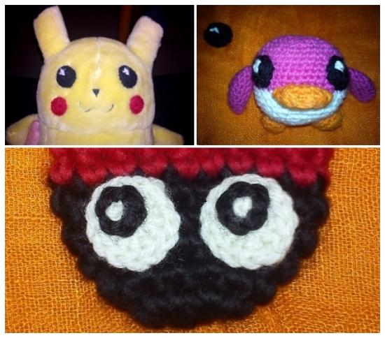 Her er 3 mønstre på øjne til tøjdyr :-) Jeg laver ofte legetøj til drengene, og jeg synes altid det er træls når der skal bruges plastøjne. Derfor lavede jeg disse varianter, som kan bruges til nærmest alle slags tøjdyr. De er også gode som erstatning, når yndlingsbamsen mister øjne som følge af gnaskende kæledyr ;-)