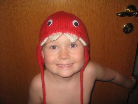 Jeg fandt denne opskrift på denne fine side via strikkesiden Ravelry, og elsker den bare! Storebror blev helt vild, og der er en undervejs til Lillebror, og måske også en til min mand, da han også blev begejstret :-D
