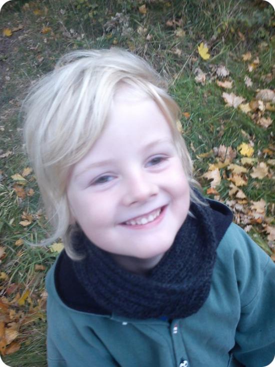 Jeg synes halstørklæder til børn kan være rigtig irriterende, og derfor er halsedisser og halsrør langt federe, medmindre man da foretrækker elefanthuer. Min ældste dreng kan bare ikke rigtigt lide at have noget stramt ved halsen, men vil gerne kunne holde varmen. Derfor lavede jeg dette halsrør i rib, som går på tværs af halsen i stedet for den anden retning :-) Det giver et rør, der strækker sig i højden, men er løst og rart i bredden. Her fremvist af den yngste, som også fik et magen til ;-)