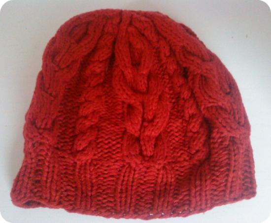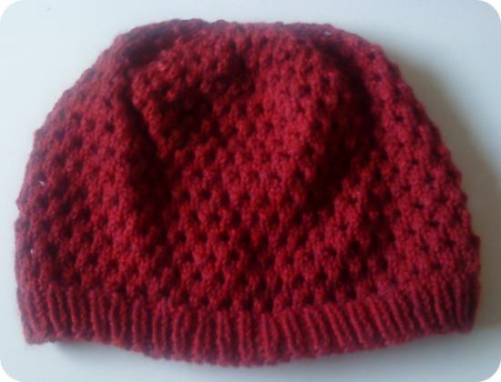 | Denne hue er så fin at jeg har lavet 2 :-) Denne til min mor, her modelleret (??) af min ældste søn, strikket i 2 tråde Lucca fino på p 6½. Mønstret køber du her. Jeg lavede også en til mig selv i rød, men den blev bare ikke så fed - jeg brugte en uld-bambus blanding, og den var for tung, så mønstret ligesom blev for fladt. | ||