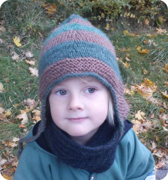 | Jeg lavede faktisk denne til mig selv, men måtte erkende at jeg ligner en total tåbe i øreflaphat :-D Heldigvis gælder det ikke for mine børn, så de kunne overtage den :-) Den er lavet efter et mønster på www.lionbrand.com, som jeg desværre simpelthen ikke kan finde :-( Jeg leder lidt mere!l | ||