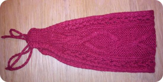 | Dette lavede jeg til min mor for år tilbage, efter et mønster en af mine strikkende veninder var faldet over i Knitty. Jeg strikkede det på p 4 i 2 tråde Lucca, så det var fint tæt, og hun har været meget glad for det :-) Se mønstret gratis her. | ||