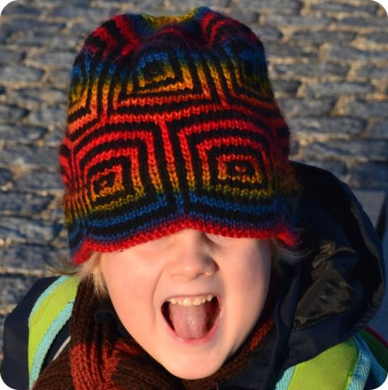 | Lillebrors skildpadde-regnbuehue :-D Den er så fin og farvestrålende. Se mere her, inkl. link til hvor mønstret købes. | ||