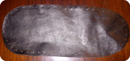 Læderet skal være blødt og ikke alt for tykt - ikke så tyndt som vaskeskind, som slides hurtigt, men sådan at det ikke giver en hård sål (dvs ikke kernelæder).