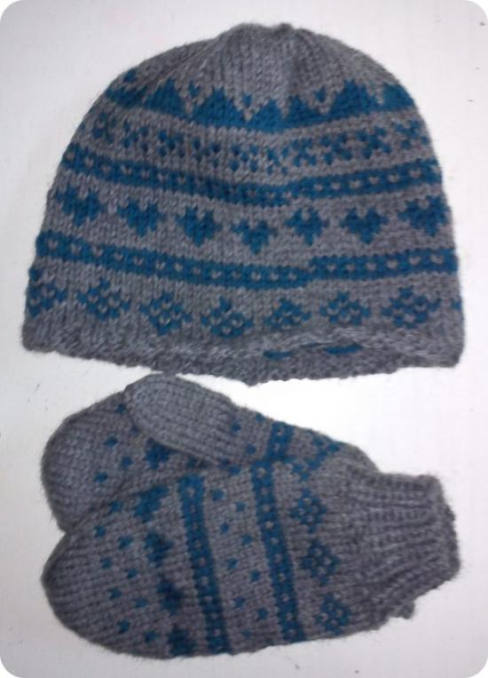 | Dette lavede jeg til min mor for år tilbage, efter et mønster en af mine strikkende veninder var faldet over i Knitty. Jeg strikkede det på p 4 i 2 tråde Lucca, så det var fint tæt, og hun har været meget glad for det :-) Se mønstret gratis her. | ||