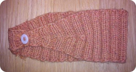 | Det varme pande/hårbånd her har intet mønster, men det er altså heller ikke nødvendigt :-) Det er blot 2x1 rib strikket rundt, i en lækker vamset uld på p 5. Hvis du laver sådan en, skal du helst lave en strikkeprøve og måle den strukket ud! Før du beslutter hvor mange masker du skal slå op. Det bliver hurtigt løst, og et pandebånd der falder af varmer ikke sååå meget... | ||