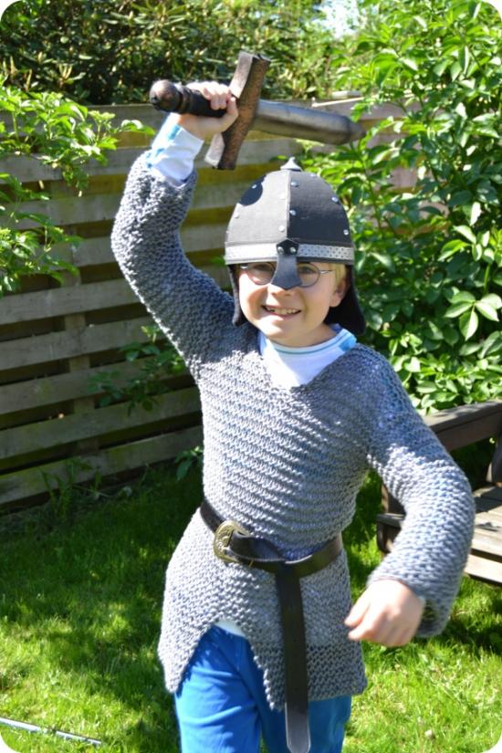 Min store dreng er som så mange andre vild med riddere, vikinger og den slags :-) Da han også er glad for rollelege med udklædning, syntes jeg bestemt han manglede en ringbrynje til at gå med den hjelm, han fik i fødselsdags gave (fra Nationalmuseet, hvis nogen har lignende afkom ;-)).