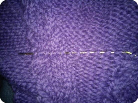 Det er uhyre simpelt - du tager blot en pind, som skal være flere størrelser mindre end den, du har strikket med, og fører ind i maskerne der hvor du vil pille op til. Gør det sådan at du kommer ind bagfra i højre maskeled - dvs ind under den første del af v'et i en retmaske. Gør dig meget umage med at komme ind i den rigtige, for det kan nemt ske at du hopper til næste række/omgang! Fortsæt hele vejen. Klik på billederne for at de i større udgaver.