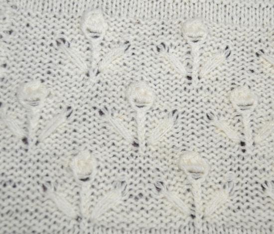 Selvom jeg synes tæppet er smukt, er jeg lidt ked af at jeg ikke først kiggede omkring på Ravelry og blev inspireret af andres projekter. Som du kan se har jeg ikke benyttet den bladkant, der anvises i det oprindelige mønster, da jeg synes den er for larmende og forstyrrer de smukke træer og blomster. Jeg ledte derfor på Ravelry og fandt dette forslag til en kant, der strikkes MED fra starten, og det havde dog været fantastisk smart, hva? Så smart var jeg ikke, jeg strikkede alt det andet først og endte med at tage masker op hele vejen rundt og strikke perlestingskant, med udtagninger i hjørnerne. Meget mere besværligt, og der fremkommer små huller i siden nogle steder, hvor maskerne er taget op. Men pyt, ikke så meget at det generer andre end mig, og modtager blev i hvert fald glad, uanset små huller :-)
