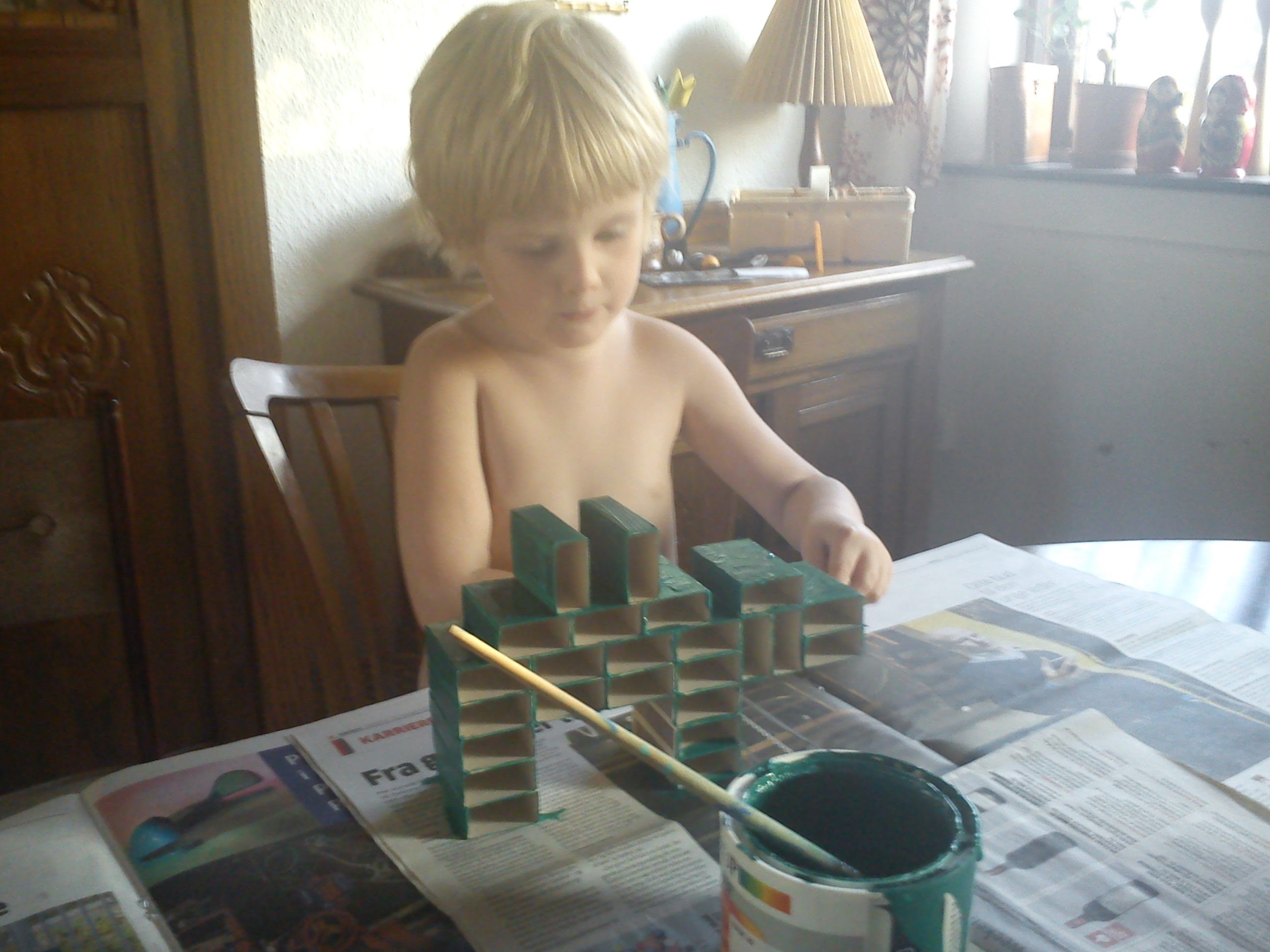 Da vi også er store fans af Shane og hans fantastisk kreative ideer, og min mor køber Familiejournalen, faldt vi over ideen og fandt den perfekt til vores kalender - så kan Storebror nemlig skrive ned på små sedler hvad der skal laves hver dag, og lægge sedlerne i de små 'skuffer' :-)