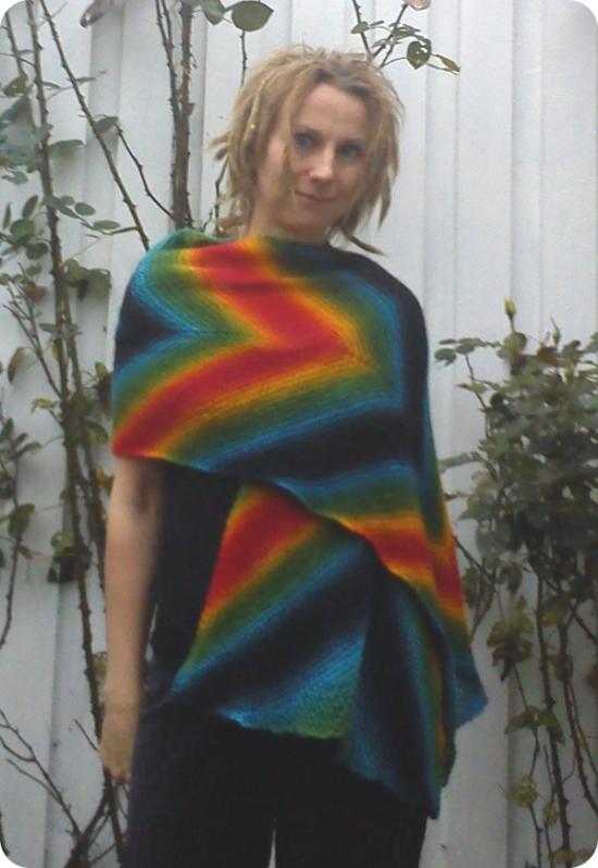 Jeg kom til at købe to nøgler Zauberball Single Tropical Fish, fordi det er det flotteste garn ever <3 Og da jeg så skulle finde på noget at bruge det til, dukkede dette simple sjal op for mit indre øje :-)